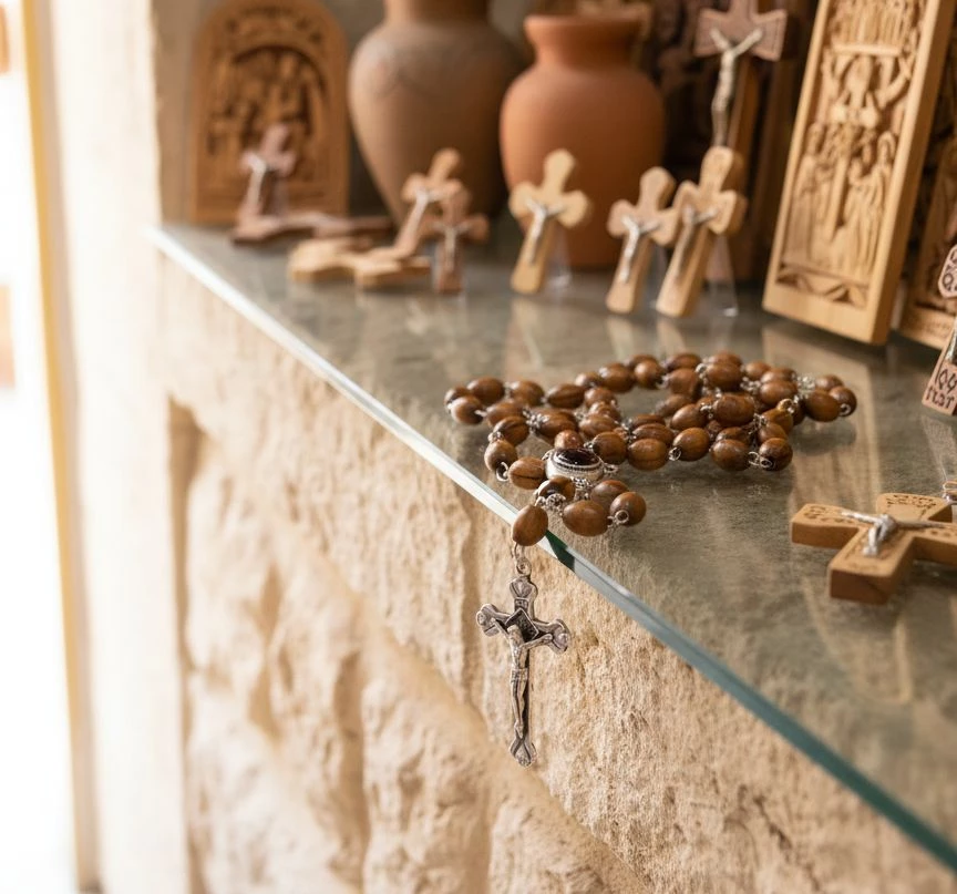 Join over 1,200 families who have chosen this authentic olive wood metal rosary. Each piece is handcrafted with prayer and devotion, ready to become a cherished part of your spiritual journey and a meaningful connection to the Holy Land.