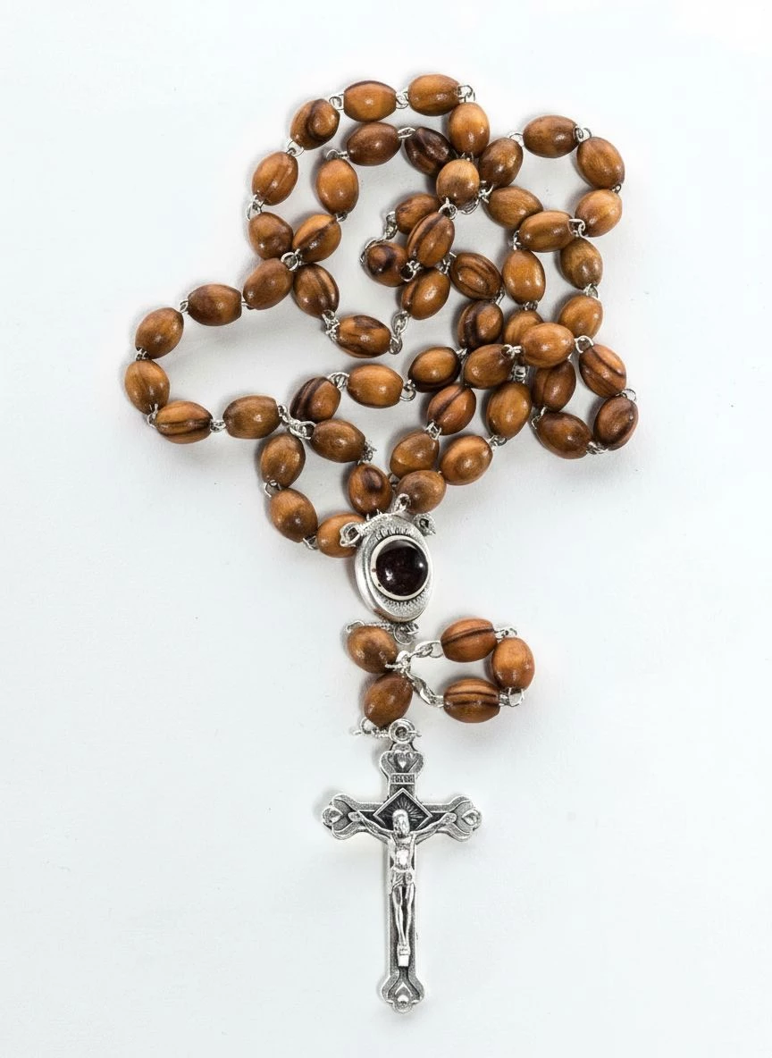 Key Features of This Olive Wood Metal Rosary