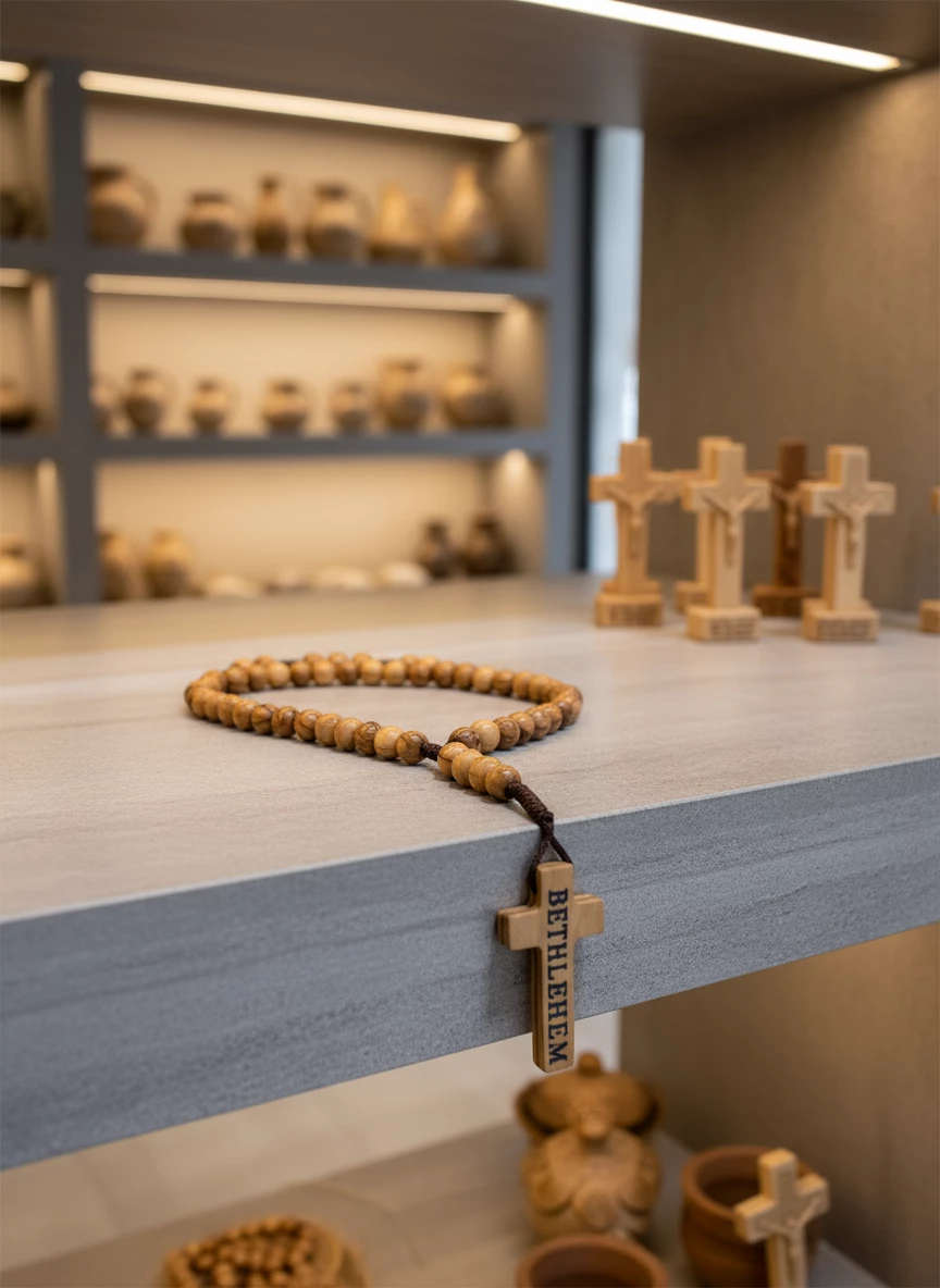 This olive wood rosary originates from sacred groves where Jesus was born. The wooden beads and cross represent authentic bethlehem wood carvings—artisans carving spiritual devotion into material form. By choosing this hand-crafted olive wood rosary, you support Palestinian Christian families preserving ancestral religious traditions. Every bead carries the heart of Christian heritage from the Holy Land.